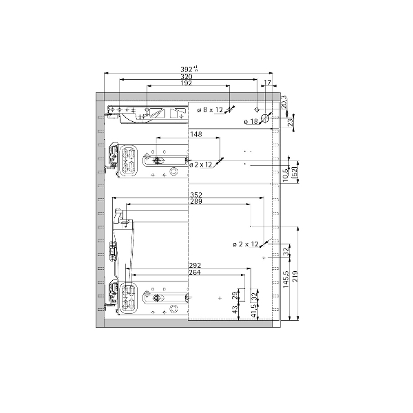 Biroja atvilktņu bloka rasējums vadotnes Q M1:1 Top 2000